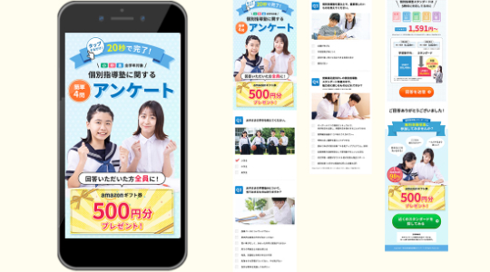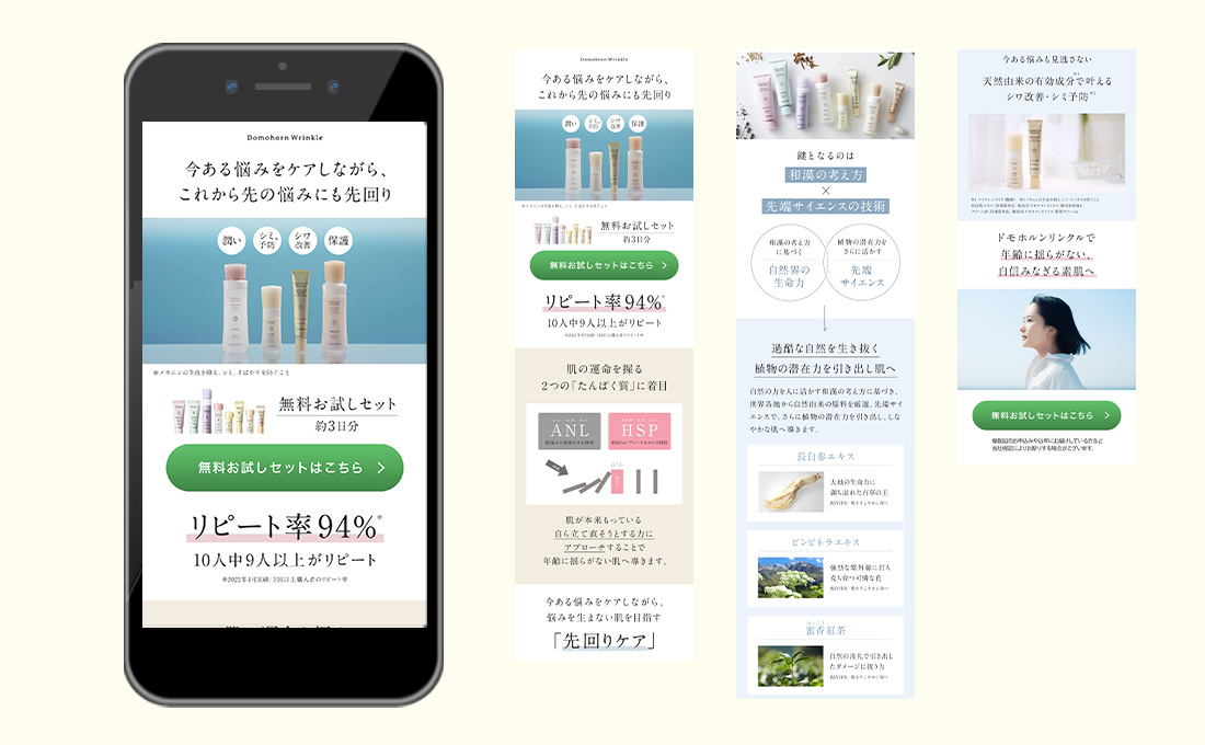 - こちらは本LPに遷移させるためのLPのため、伝えたい要点だけを簡潔に伝えるLPにしました。
