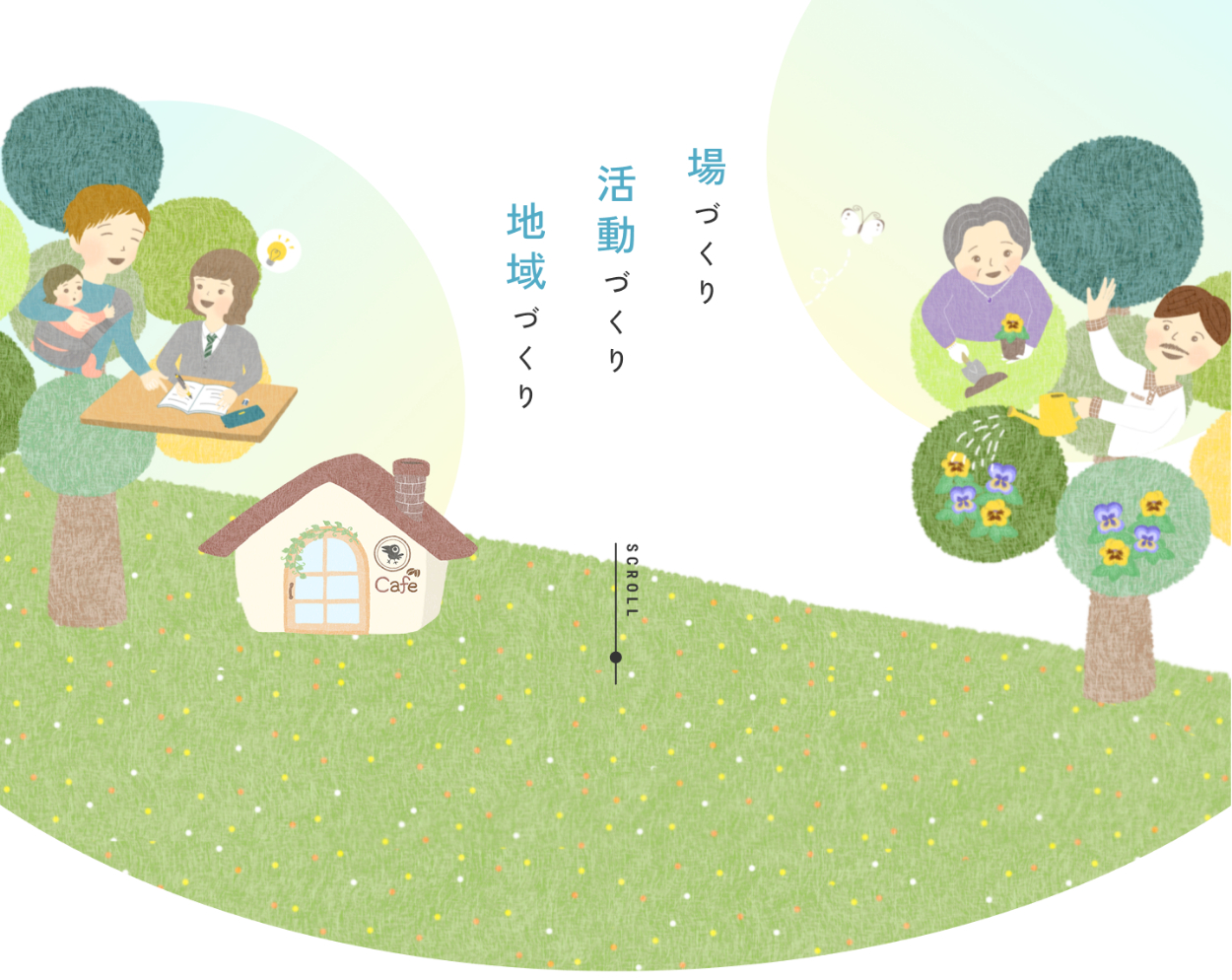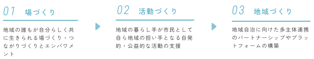 [ 活動の3本柱「場づくり・活動づくり・地域づくり」]