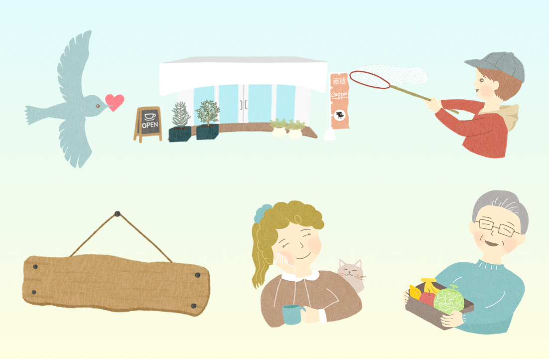 - 地域の人々のつながりや拠点としてのカフェを家のイラストで表現