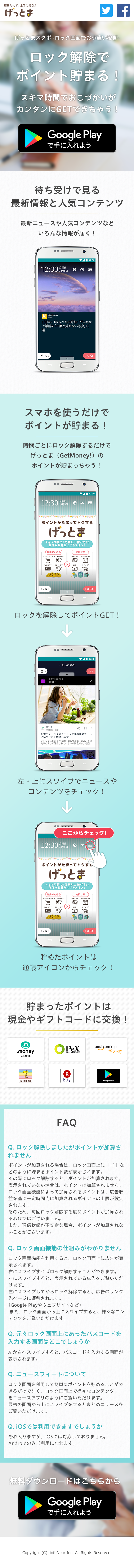 ロック画面解除でポイントが貯まるアプリの訴求ランディングページ制作