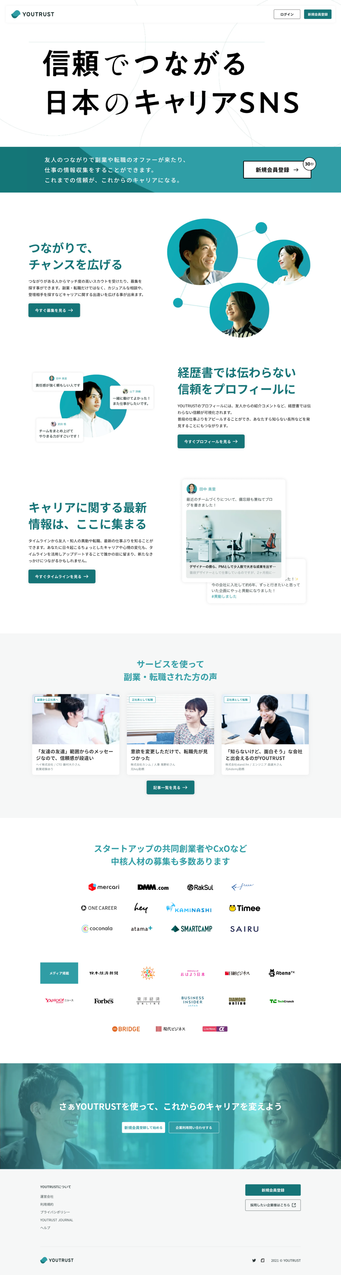 LP制作 Tetsuo Hashimoto UIデザイナー OVERVIEW YOUTRUST社のLPをラフデザインをもとにSTUDIOでコーディング YEAR 2021 ラフデザインをもとにSTUDIOを利用してレスポンシブ対応されたLPのコーディングを行いました。Webデザイナーとしてのキャリアも長いので、大雑把な要求をもとに詳細デザインからコーディングを行うことができます。