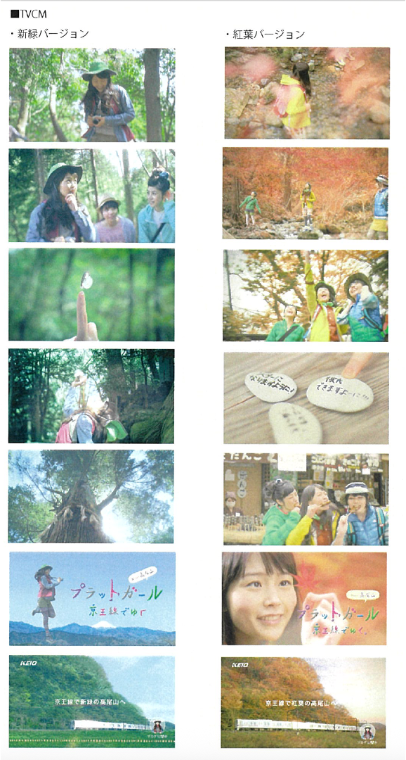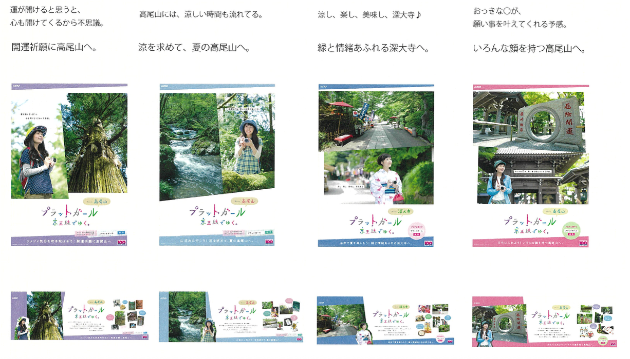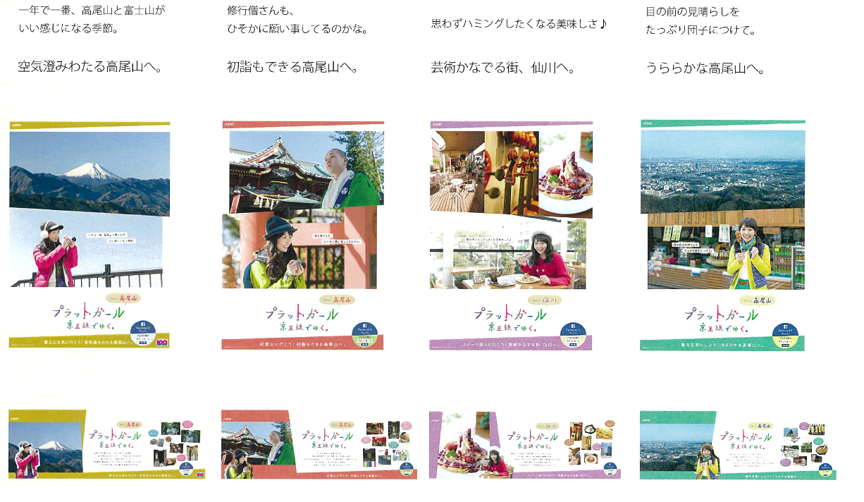 F1 層をターゲットに、オリジナルキャラクター「高尾かえで」がプラッと高尾山へ行ける京王線をアピール。