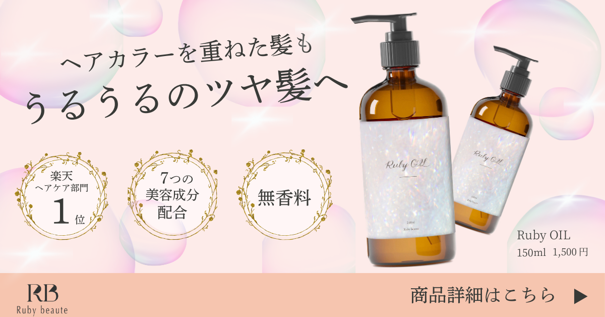 Ruby OILはヘアカラーを楽しむ方のお悩みに寄り添ったヘアオイルとして開発されました。 ヘアカラーで傷んだ髪のパサつきを、潤いのある滑らかなツヤ髪へ導きます。 保湿美容成分を7種類配合しており、傷みのケアはもちろん、カラーの色持ちも良くしてくれます。 普段の生活やリラックスタイムにも気にならない無香料。