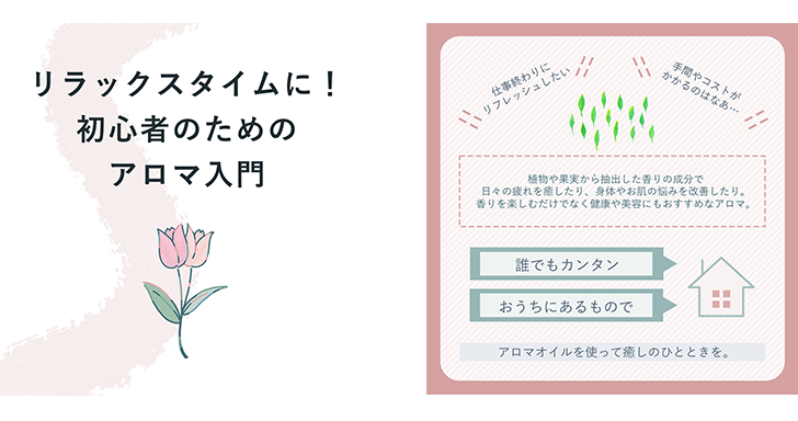 「初心者のためのアロマ入門」というテーマでInstagram・Twitter用バナーを制作させて頂きました。