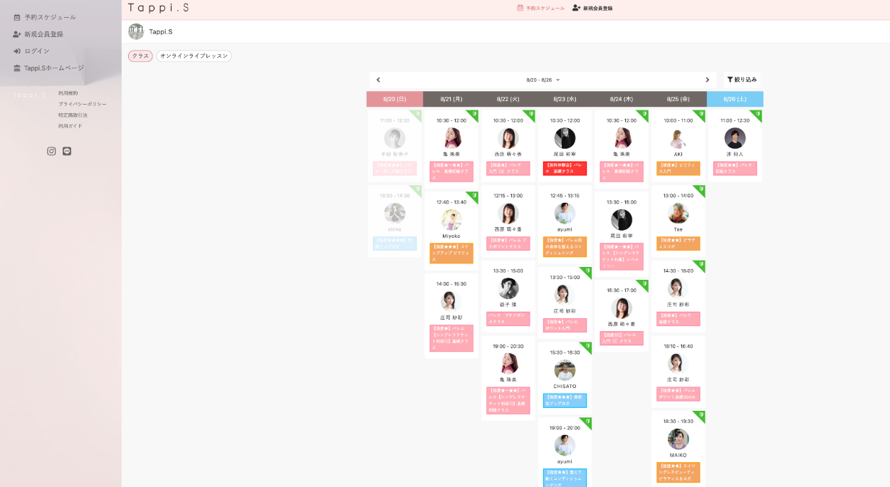 サイトURL→https://tappi-s.hacomono.jp/reserve/schedule/1/1/