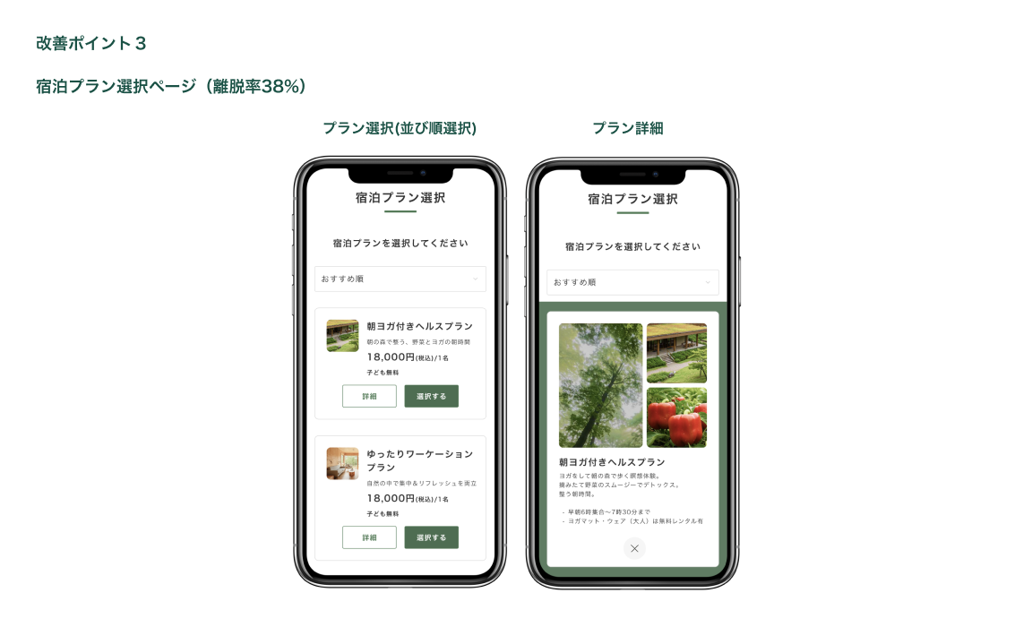 ■課題3:宿泊プラン選択ページ(離脱率38%)