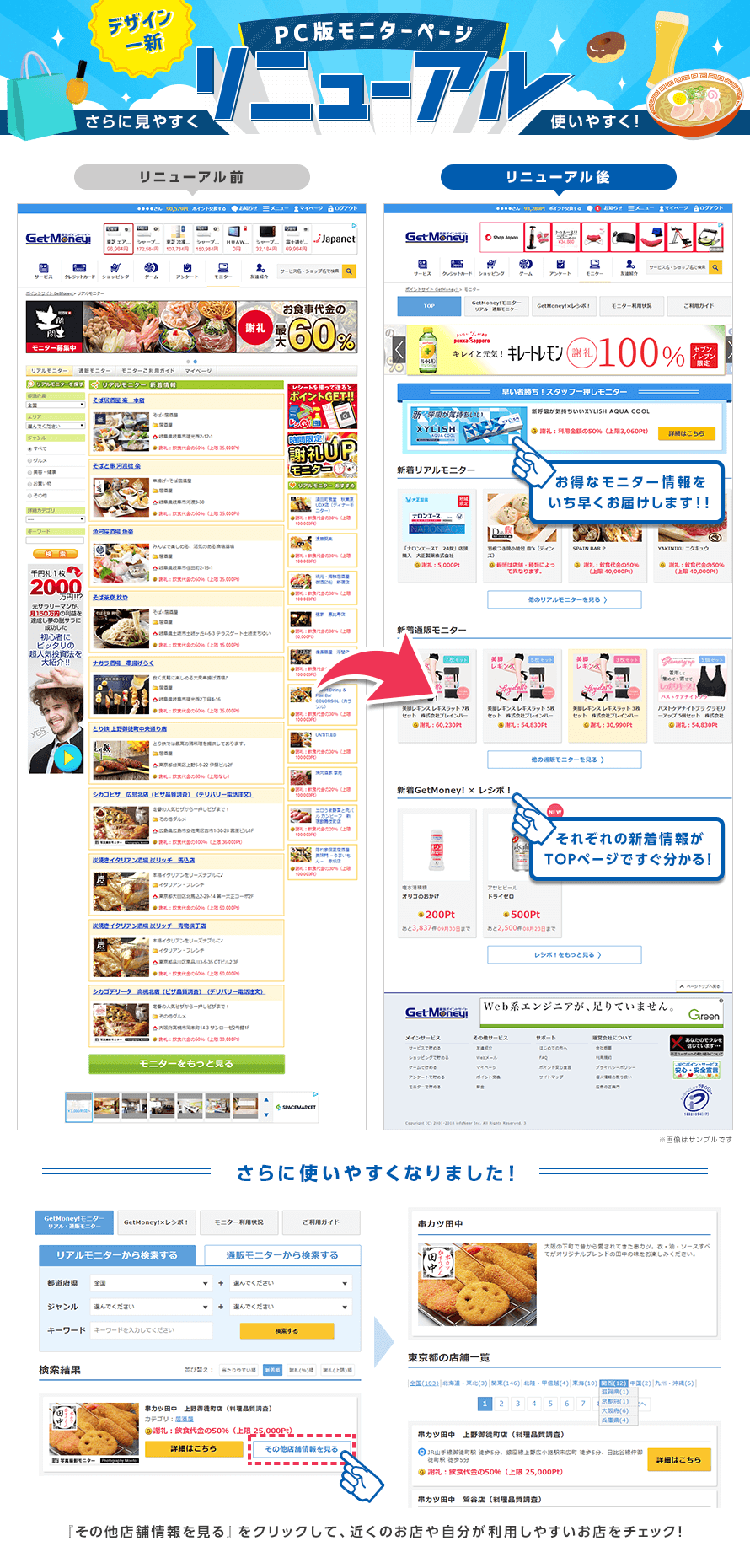 ・GetMoney!モニター、レシポページへのスムーズな遷移