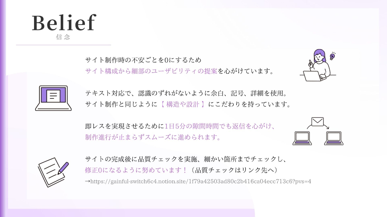 テキスト量が多い部分は左揃えで整え、可読性を意識した配置に。読み手がストレスなく情報を追えるよう工夫しました。