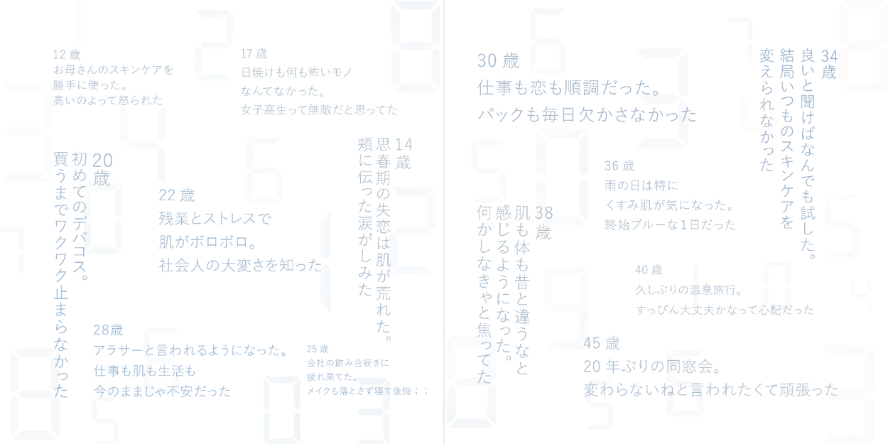 CELASEEQのブランドを知ってもらい、世界観に共感を持ってもらえるように作成。 一人一人が一度は経験したような肌の悩みを構成要素に入れ込むことで誰でも自分ごとだと感じてもらえるような構成を考えた。