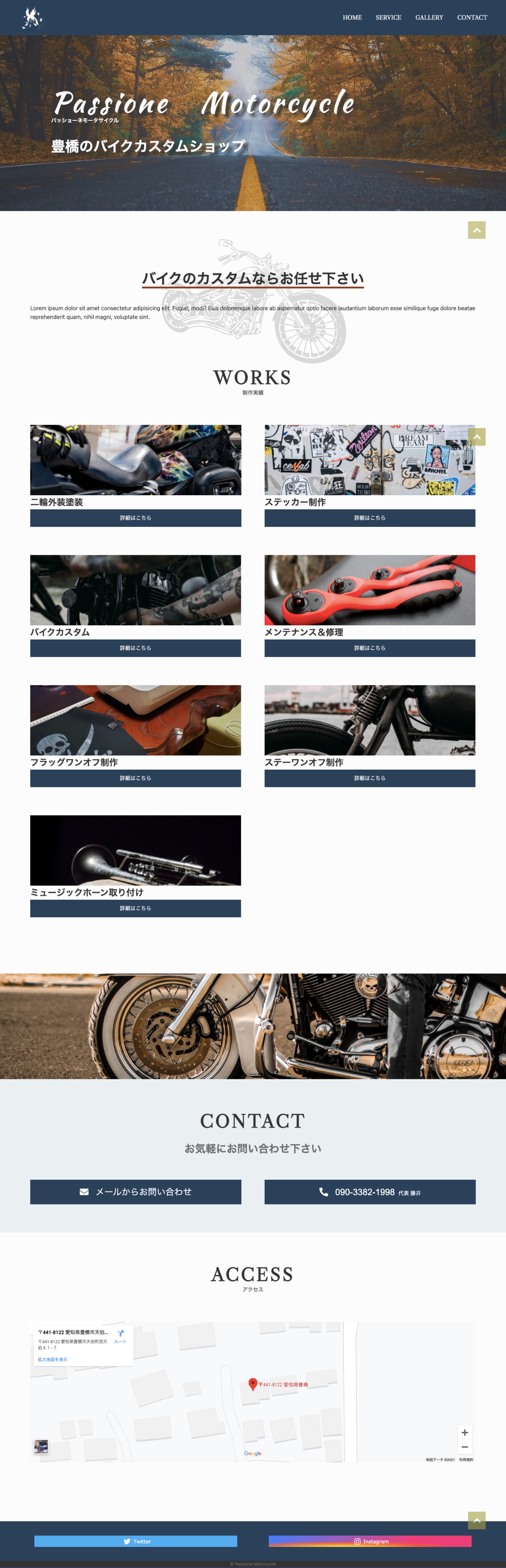 とにかくかっこいいサイトにしてほしいという要望を頂いていたこと、スタイリッシュなロゴを使用されていたのでサイトもスタイリッシュに仕上げました。カラーはツーリングしているバイクをイメージして下添付画像の色合いにしました。