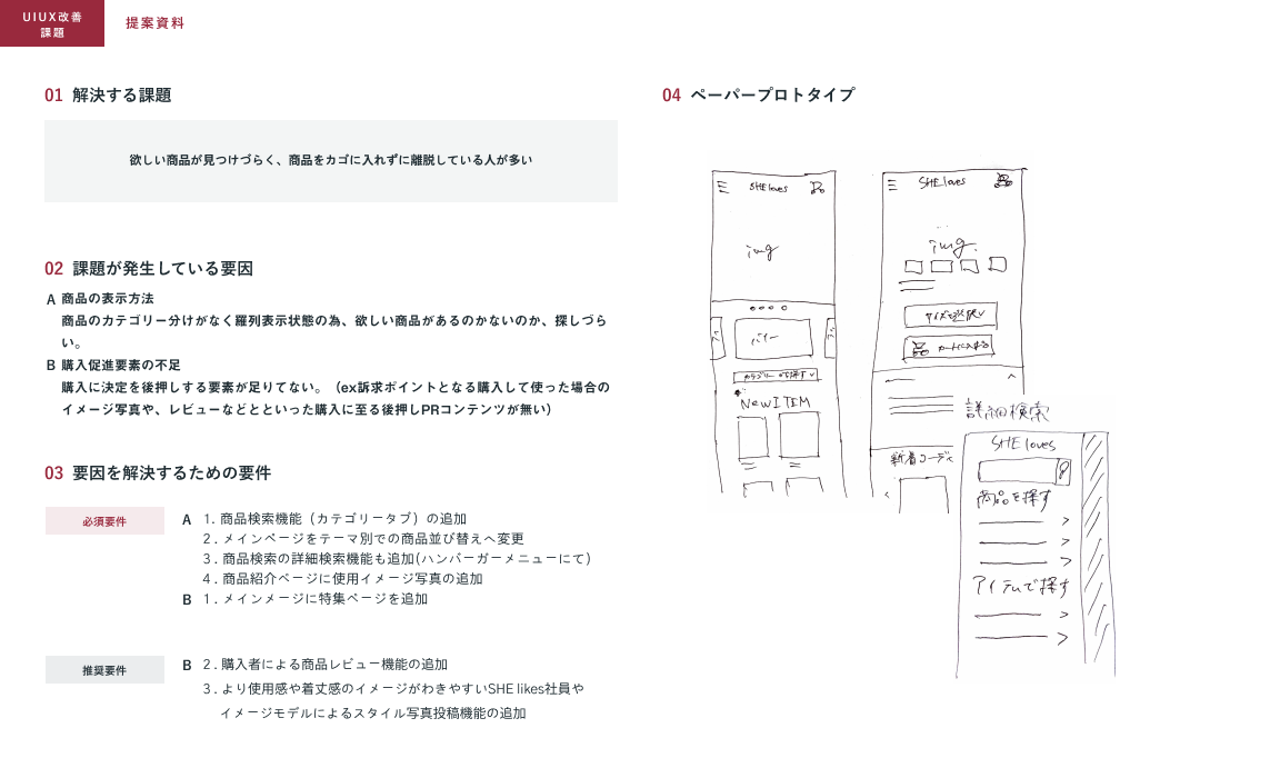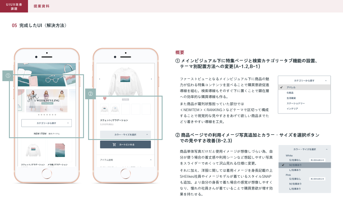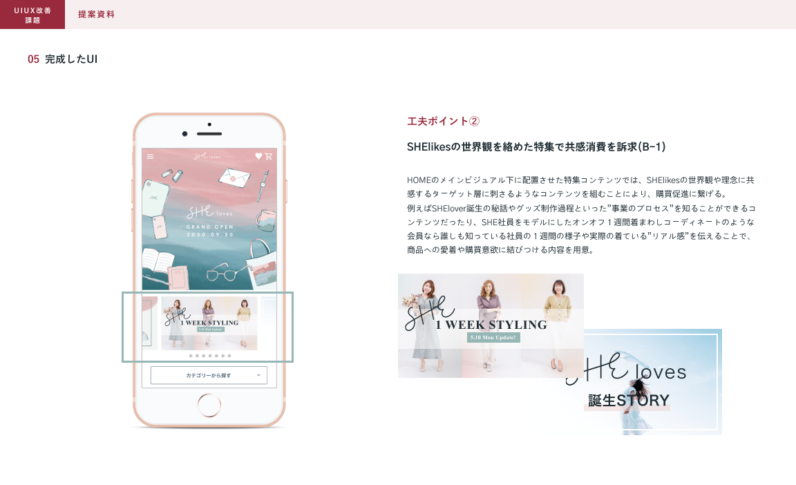 SHElikes MULTI CREATOR COURSEの課題で、クライアントの課題解決に向けた架空ECサイトの改善提案 に取り組みました。