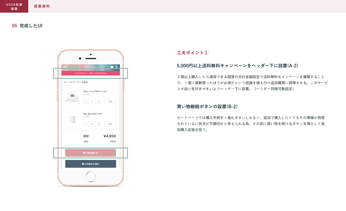 制作内容 :課題に対する要件定義、改善提案(UI改善案の作成)、バナー制作