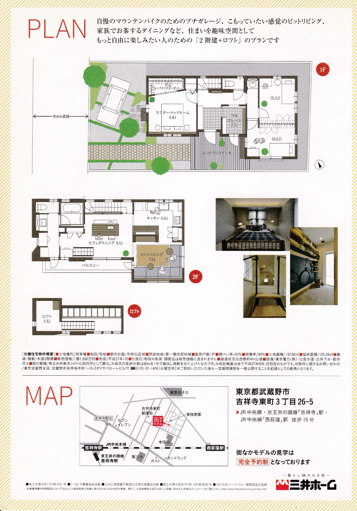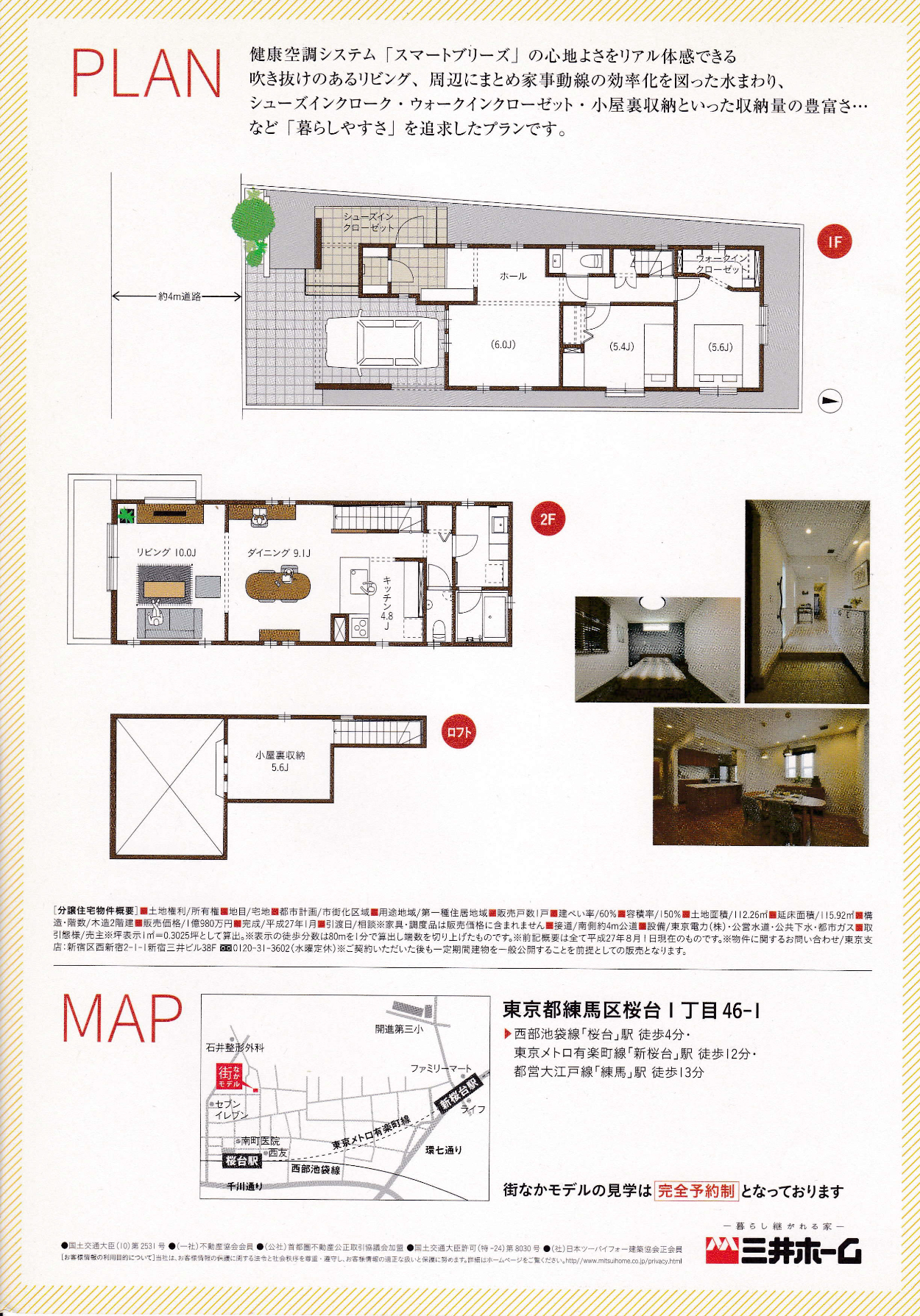 三井ホーム「街なかモデル」パンフレット図面・地図 本多理美 satomi honda グラフィックデザイナー 三井ホームの都内5ヶ所にあるモデルハウス「街なかモデル」を紹介するパンフレット内の図面・地図を制作しました。
