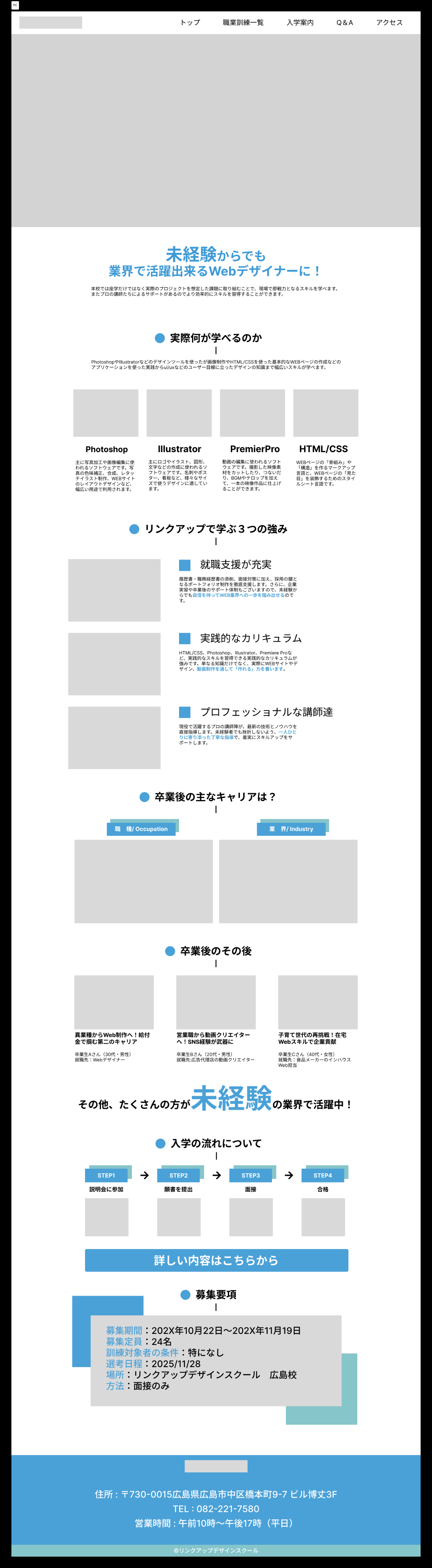 タイトル:Webデザインスクール紹介ページ(ワイヤーフレーム/デザインカンプ)
