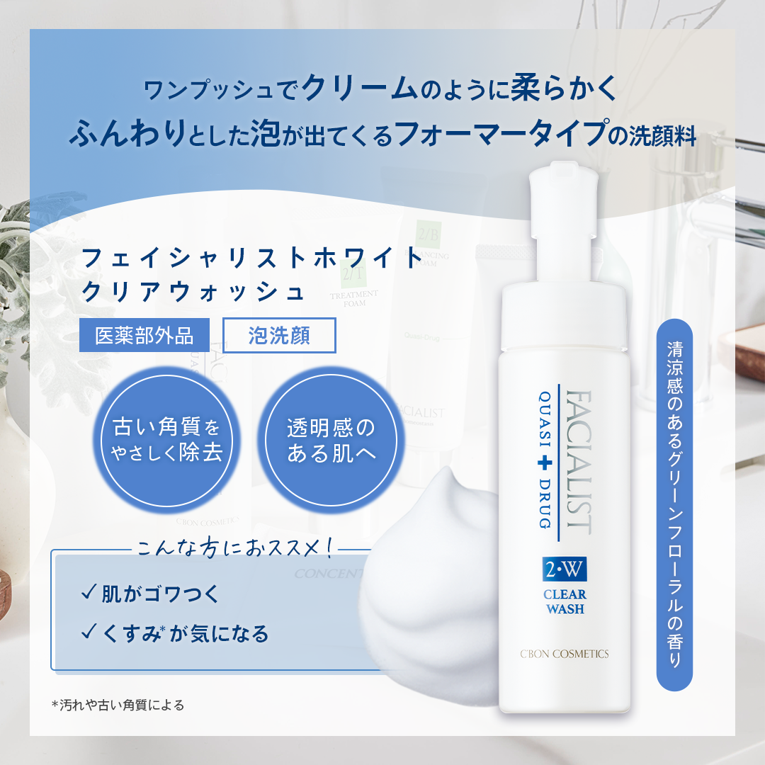 洗顔料のイメージを「清潔感」「スッキリ感」「クリア」と定義しその印象を伝えられるよう配色とあしらいを選定しました。