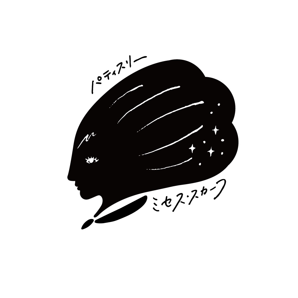 架空の喫茶店「ミセス・スカーフ」を想定した自主制作ロゴ。 “やさしさと凛とした佇まい”をテーマに、スカーフを巻いた女性の横顔をモチーフとして制作しました。 ロゴ単体だけでなく、看板やパッケージへの展開までを想定した設計としています。