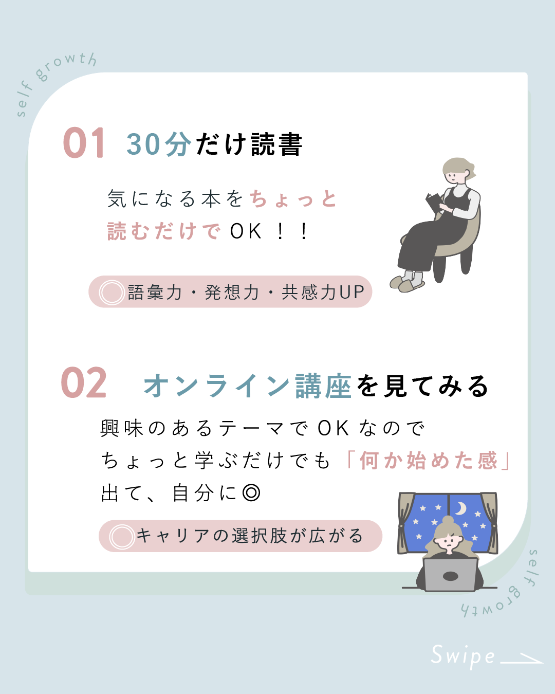 忙しい日々の中でも、少しの工夫で自分を高められるヒントを、わかりやすくまとめました。