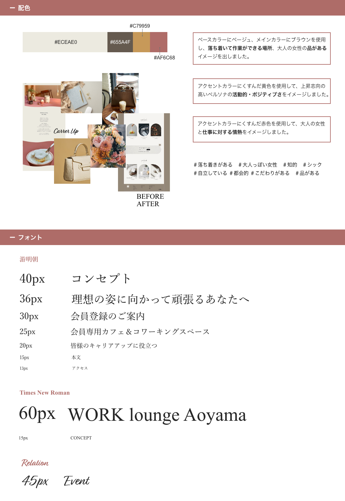 ペルソナの思考や求めていることを元に情報設計を行い、必要な情報がより伝わりやすく、かつコワーキングスペースの雰囲気がわかるように、配色などのビジュアルデザインにもこだわりました。