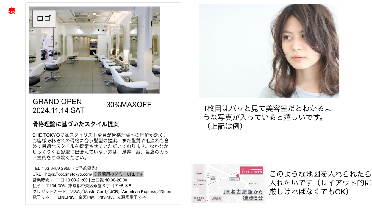 また、情報をどんな順番で見せるか、どこを目立たせるかなど、見やすさを考えたレイアウトの大切さも実感しました。キャッチコピーや特典の見せ方一つで、印象が変わるのも面白かったです。