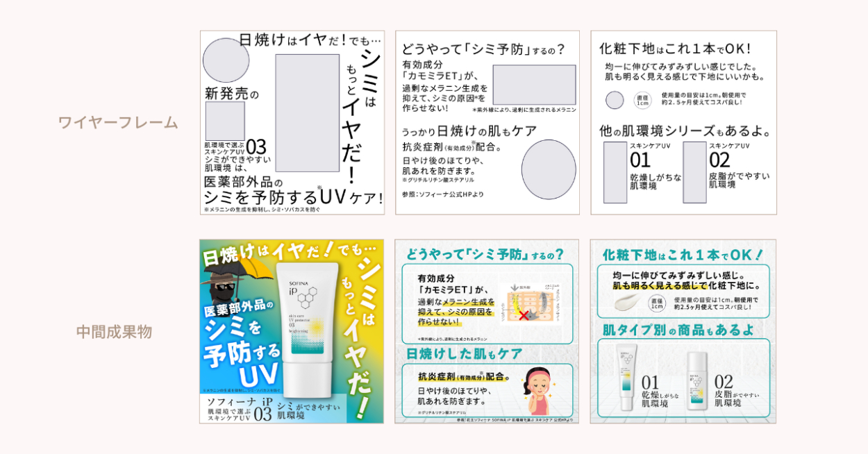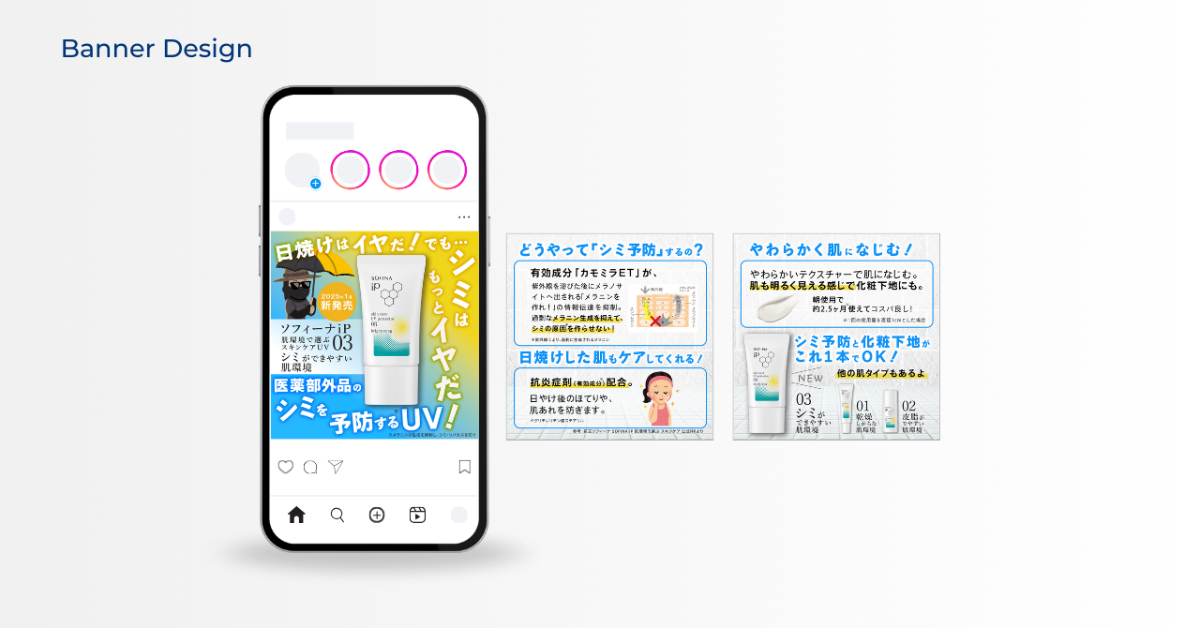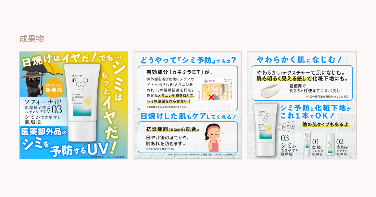 - 制作目的:『ソフィーナ iP スキンケアUV 03 シミができやすい肌環境』の認知獲得・拡大