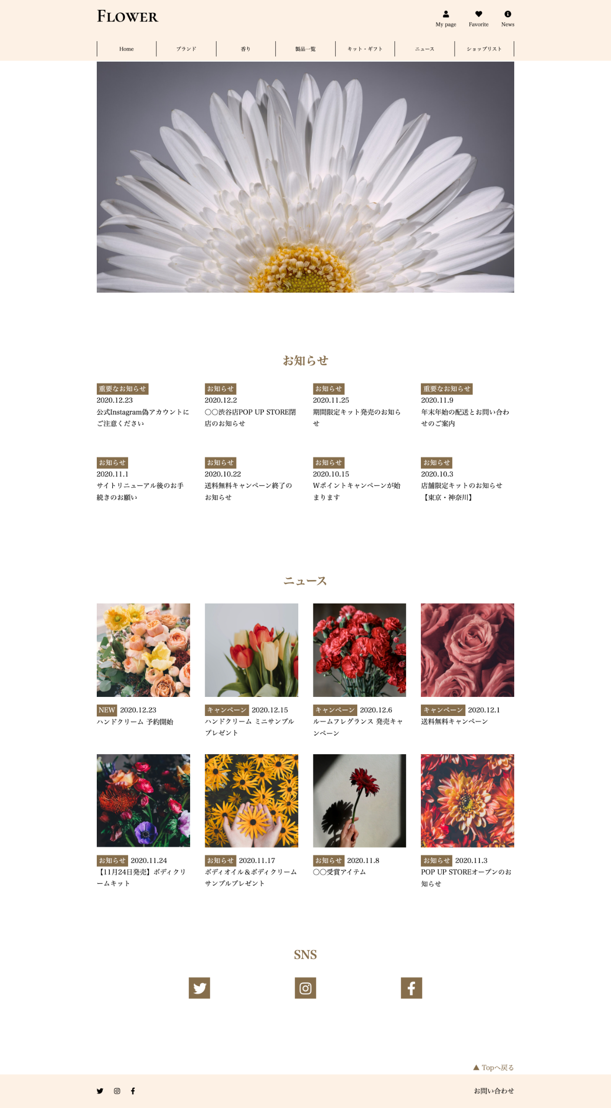 「花」がテーマのボディケア商品を取り扱っているWebサイトを作成しました。