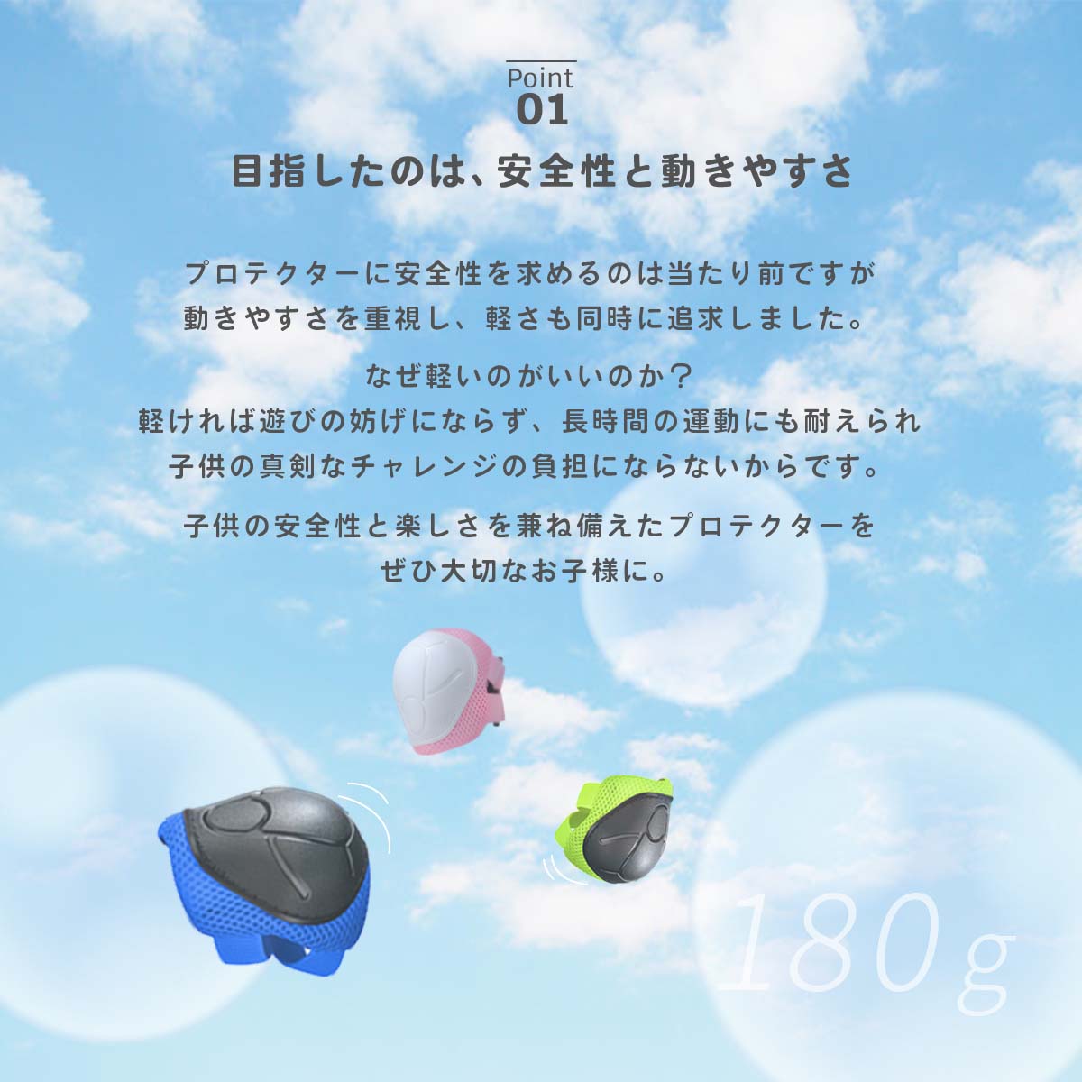 【crowdworks実績】幼児用プロテクター 商品画像用バナー(計16枚) MIZUKI. WEBデザイナー クライアント様より搭載許可をいただいております。キッズ向けのPOPなデザインでありながら、正しい情報が伝わりやすい情報設計にこだわりました。