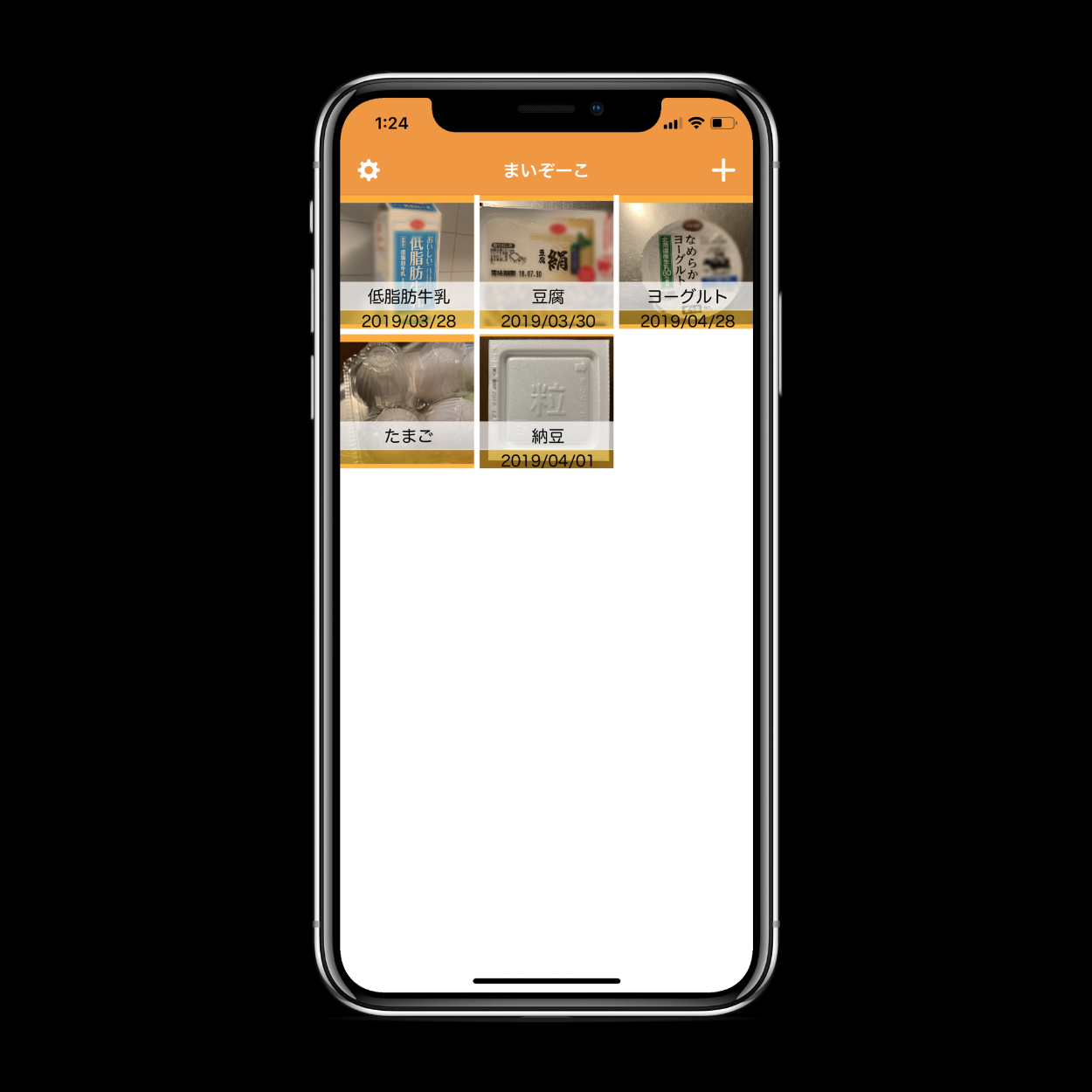 概要:冷蔵庫の中身を管理するアプリ。食品の画像とタイトル、賞味期限を記録し、期限が近くなると通知が送信されます。