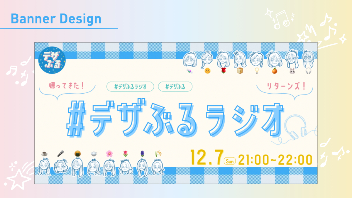 - タイトルは大きくし、小さく「帰ってきた!」「リターンズ!」を入れることで、当時ファンだった方達に「え?デザぶるラジオ!?」と気になってもらい、そこから詳細を見てもらえるように工夫しました。
