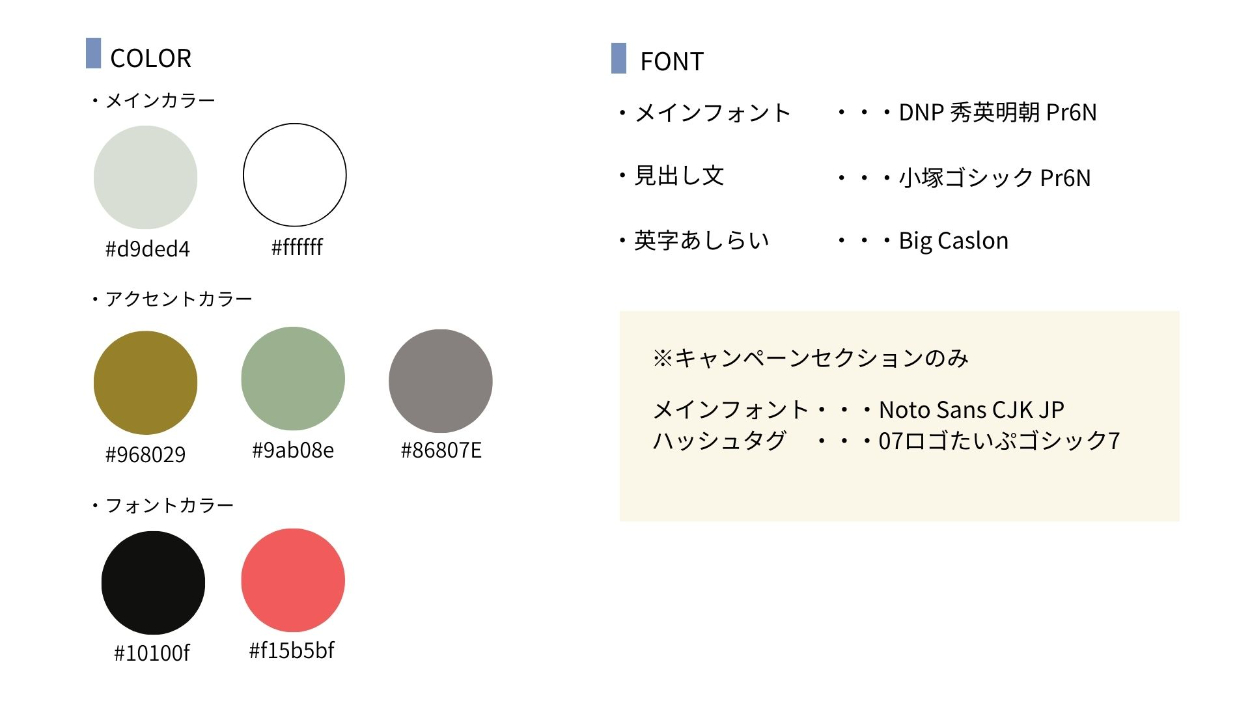 ・キャンペーンの訴求をするために、キャンペーン概要のセクションのみ、ゴシック体にフォントを変え、InstagramやTwitterのアイコンで視覚的にSNSでキャンペーンに参加できること、気軽に参加できそう!と思ってもらえるデザインにしました。