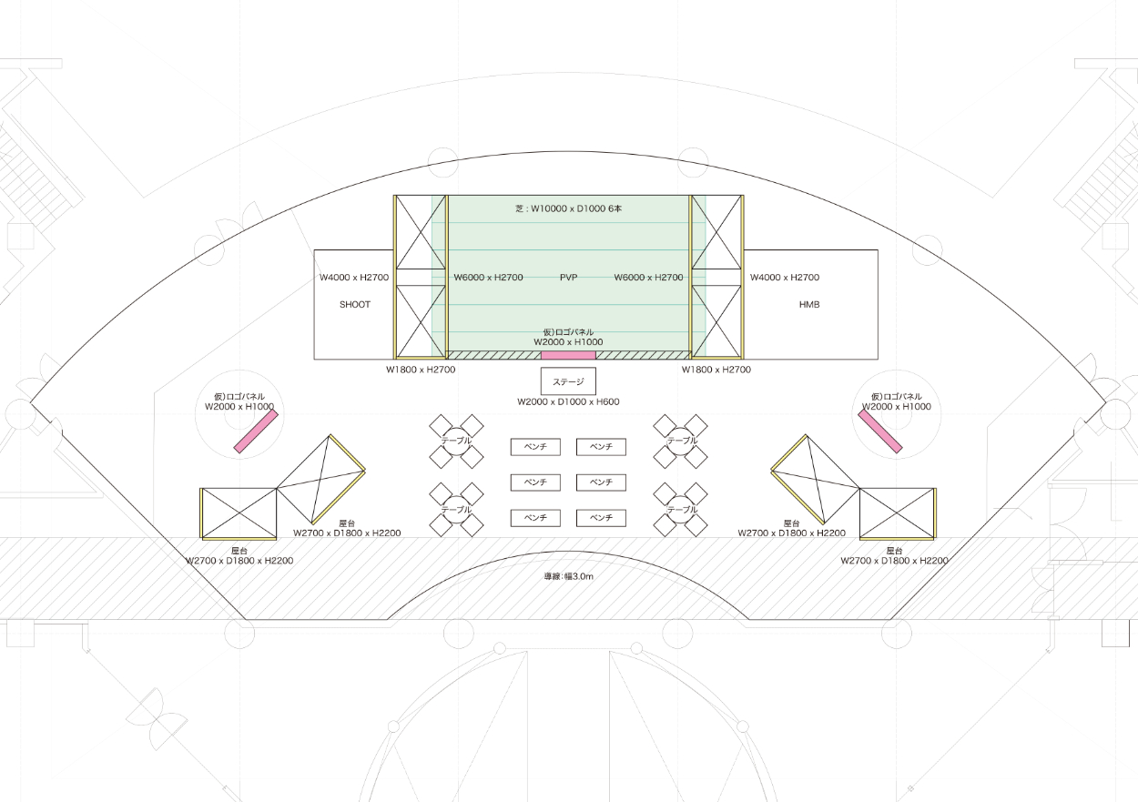 会場の下見をし、どのようにコンテンツを配置するかなどを図面に起こした。