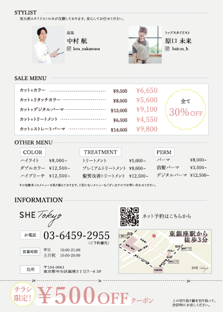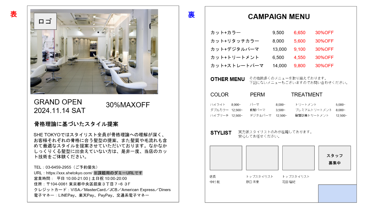 銀座に美容サロンを新しくオープンすることになり、そのためにキャンペーンで、認知向上・新設特典クーポンをつけることで新規顧客の集客・今後もリピートしてもらうための担当者の表示をしていく為。
