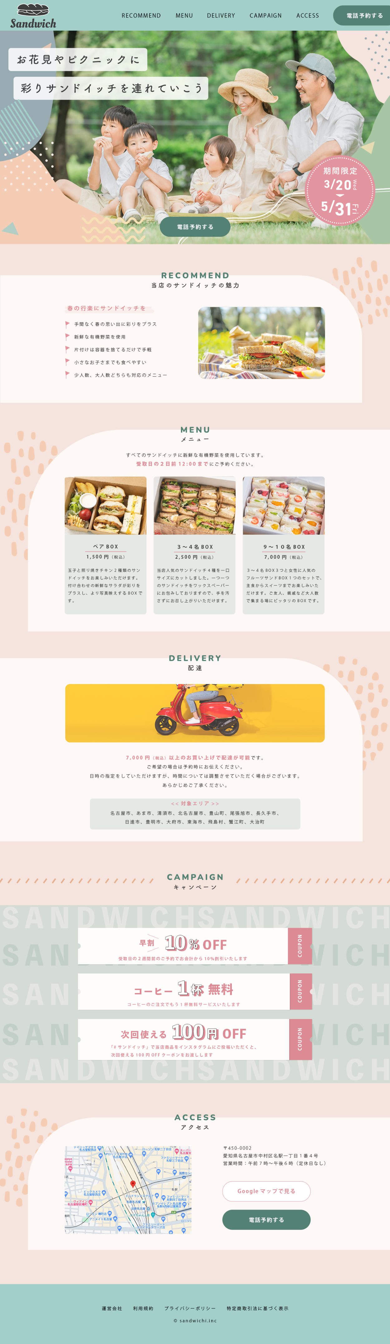 ・屋外で楽しくおしゃれにサンドイッチを食べることがイメージでき、遠足前日のようなわくわく感が伝わるサイトを目指してあしらい等考えました。