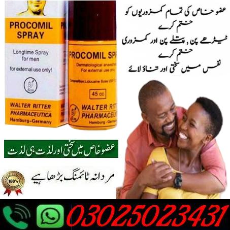 A successful defer shower that extends the hour of sexual contact and forestalls early discharge. Procomil Spray in Pakistan is an ideal find for men who need to give delight remarkable to their cherished lady. The item causes solid sexual excitement, advances persevering erection, and adds perseverance. The utilization of the Procomil 45cc Spray in Pakistan ensures an extraordinary delight from long and great intercourse.