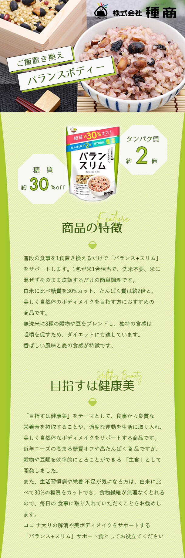 商品パッケージのカラーを使用し、背景をストライプにしたり、両側にパッケージと同じように黄緑のグラデーションのあしらいを足し、スリム感を出しました。