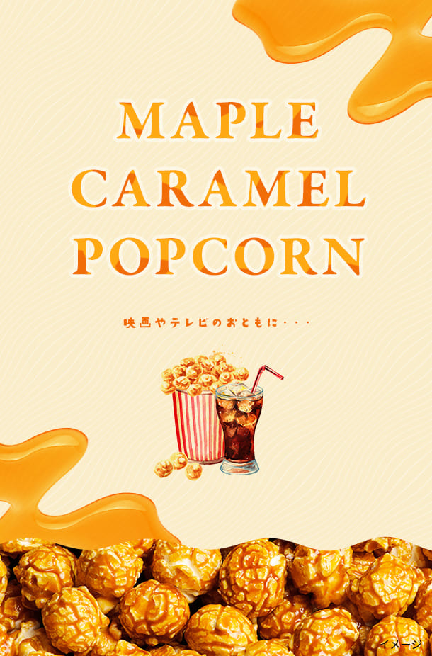 ◽️シロップの素材や美味しそうなポップコーンの写真を入れて購入意欲をそそるように。