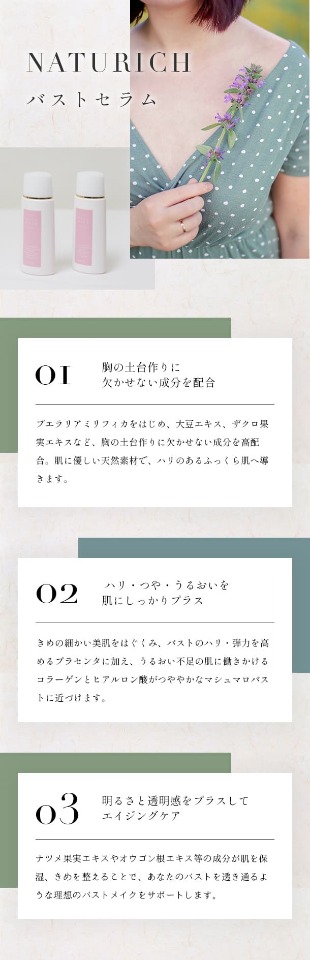 1つ前のバナーと同じ系列の商品のため、同じようにナチュラルな雰囲気になるようにデザインしました。