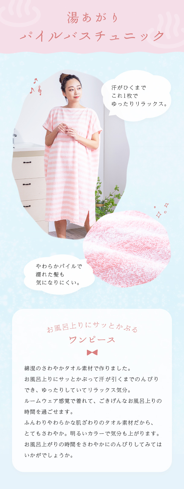 湯上がりのゆったりした時間に着用される商品なので、