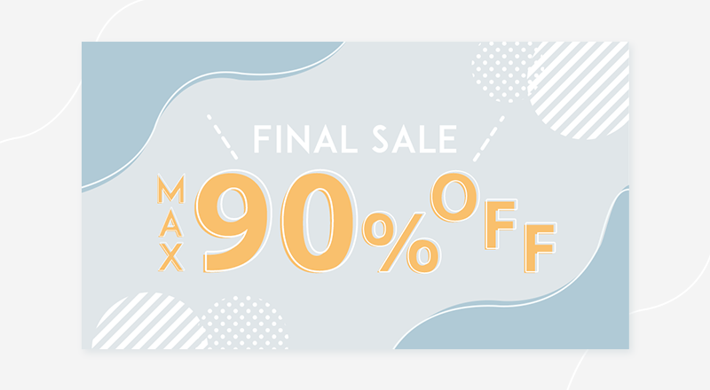 - ECサイトのセールということで、ワクワクした雰囲気を伝えたかったため、ストライプとドットの装飾や、文字の配置をずらすなど楽しいイメージを出すよう工夫しました。