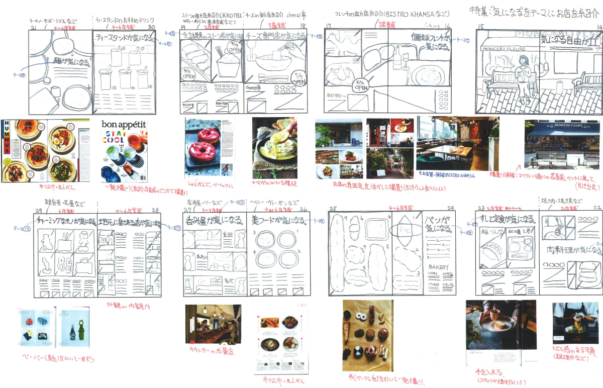 紹介必須の人気店は違うアプローチから掲載。ストレートに紹介するのでなく、他店とのコラボやレポート記事など独自の切り口で企画を立てて制作。情報に一ひねり加えることで、読者に新発見を与えるページに。