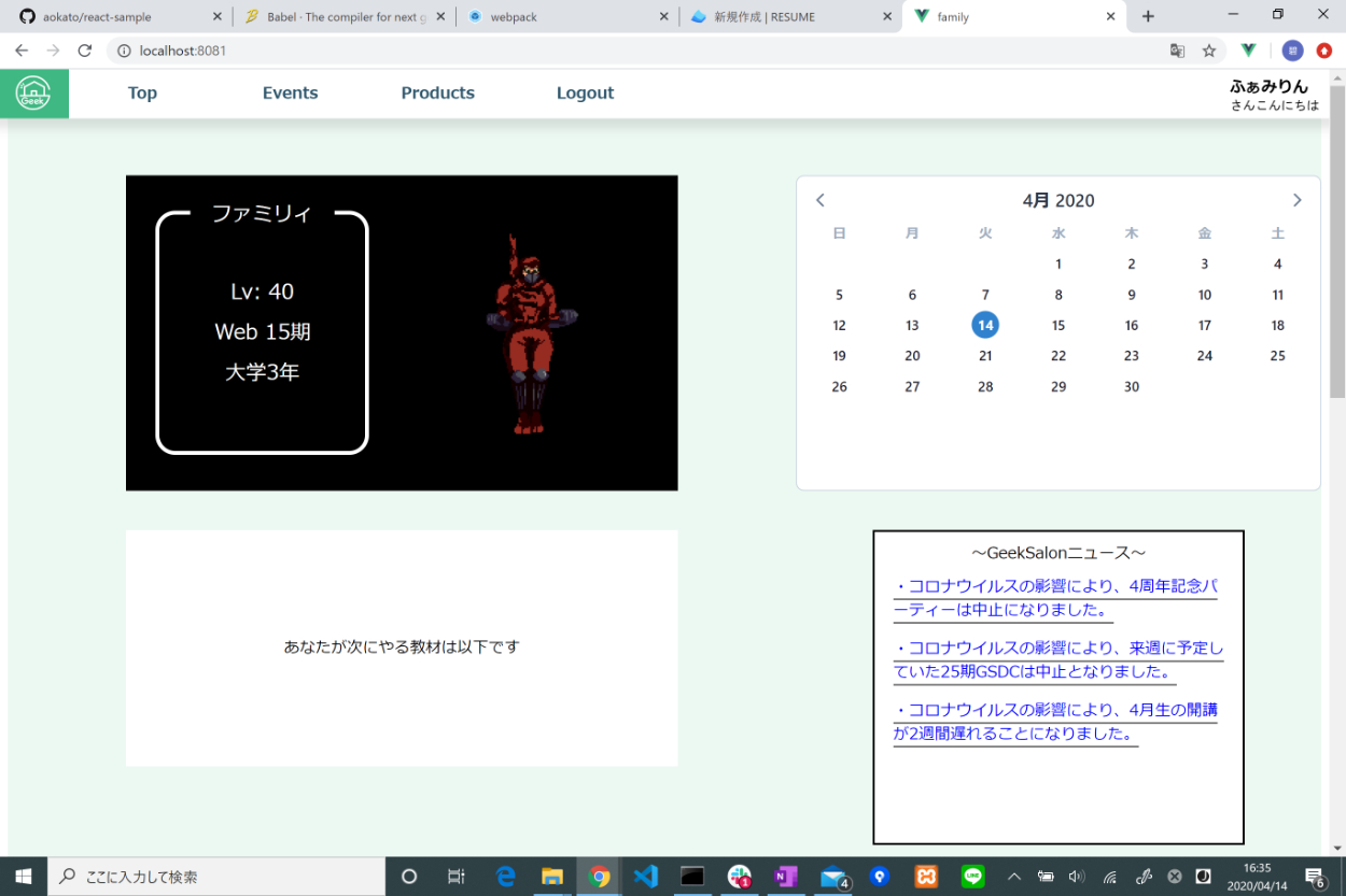 私はギークサロンという大学生限定のプログラミングコミュニティにて、プログラミングの学習をしていました。ですが、このコミュニティには受講生が専用で使うようなアプリケーションがなく、受講生限定のURLから一々教材を見ないといけませんでした。私の学習していたコースでは、3カ月の学習期間の終了時にチームでアプリケーションを作るという課題があったので、この問題を解決するべくチームで新教材サイトを作ってしまおうという考えに至ったことが制作のきっかけです。