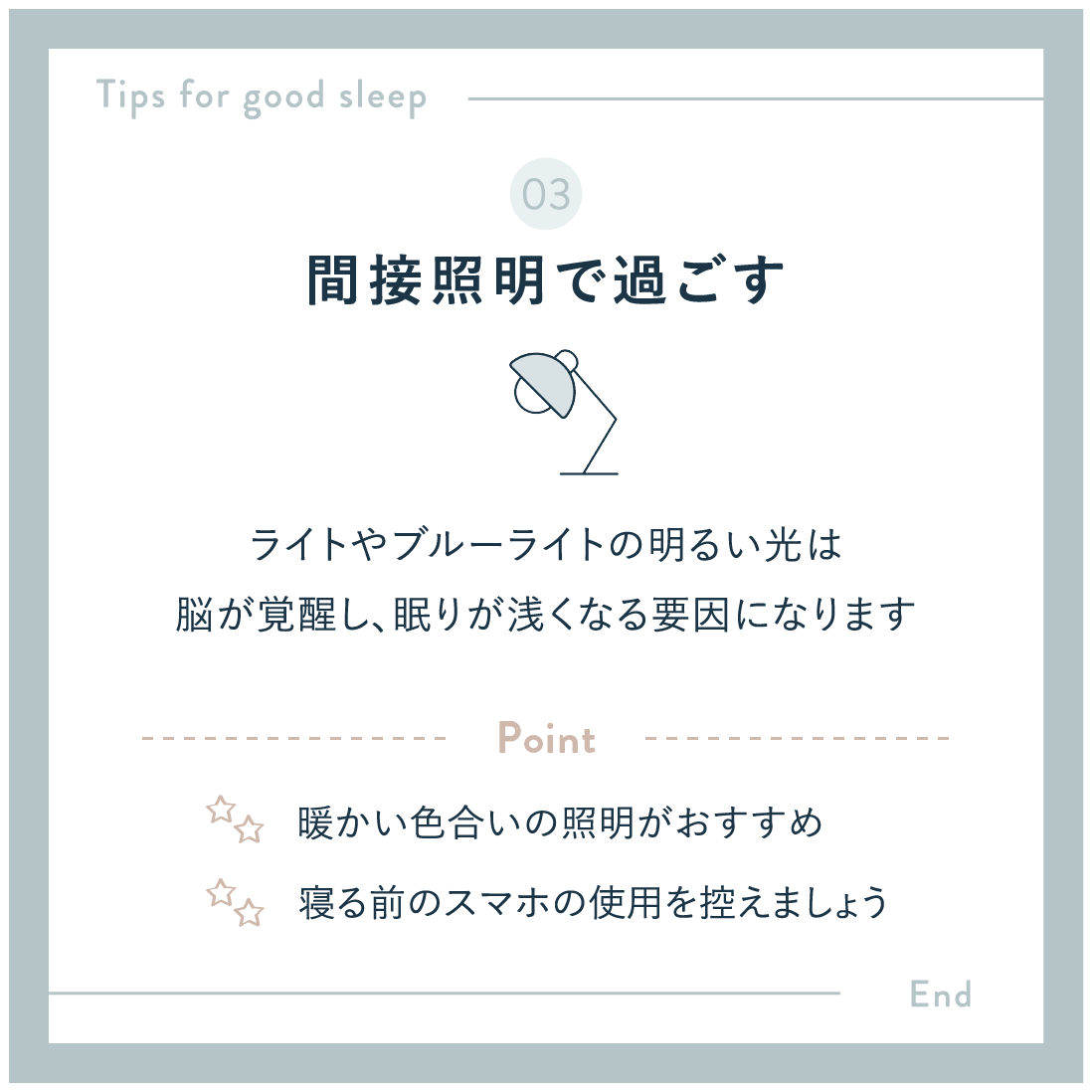 - タイトル:「明日のご機嫌は今日のうちから 心地よい睡眠のためにやること 3選」