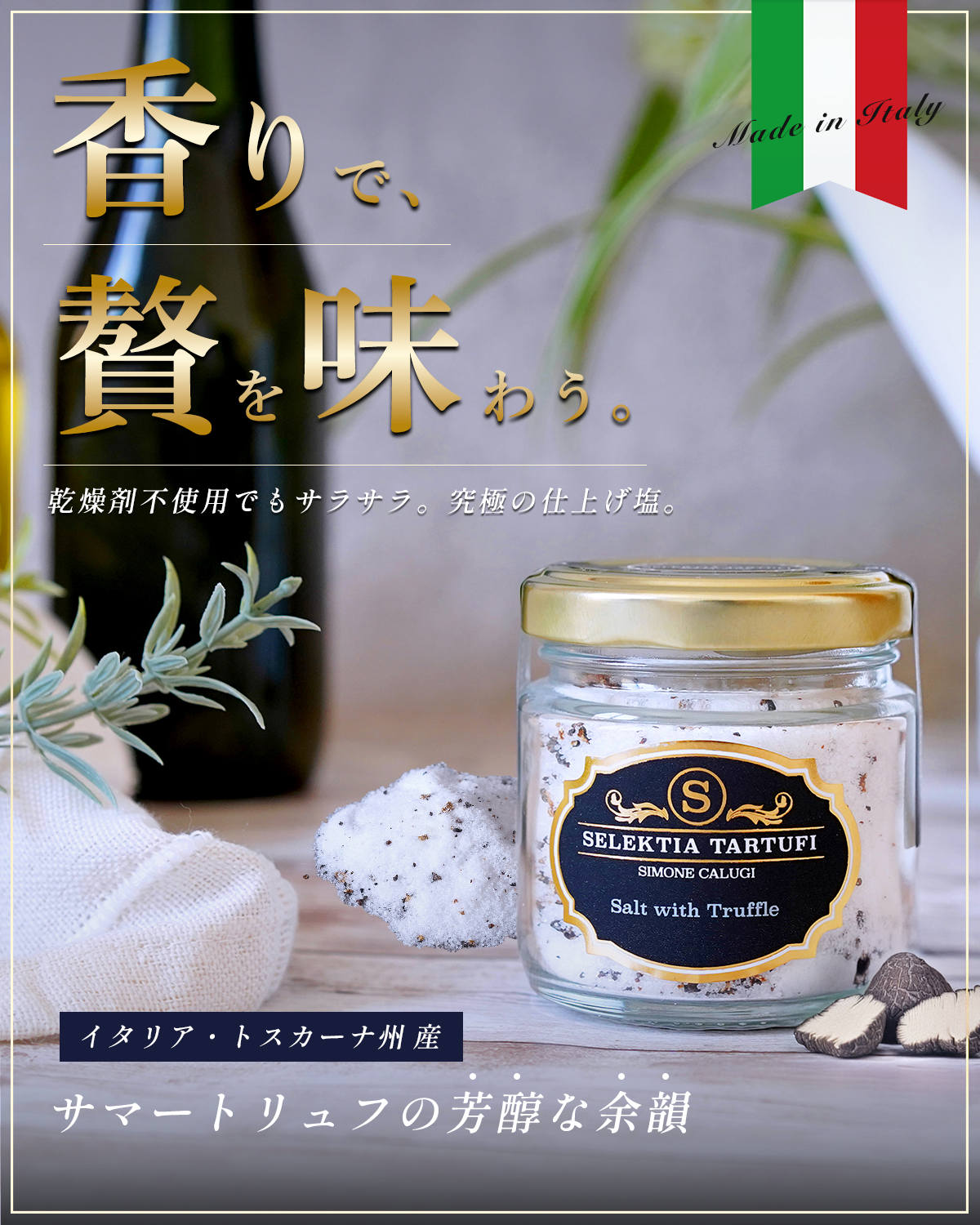 「香りで、贅を味わう」を金色のグラデーションで装飾し、トリュフの高級感を視覚的に演出。