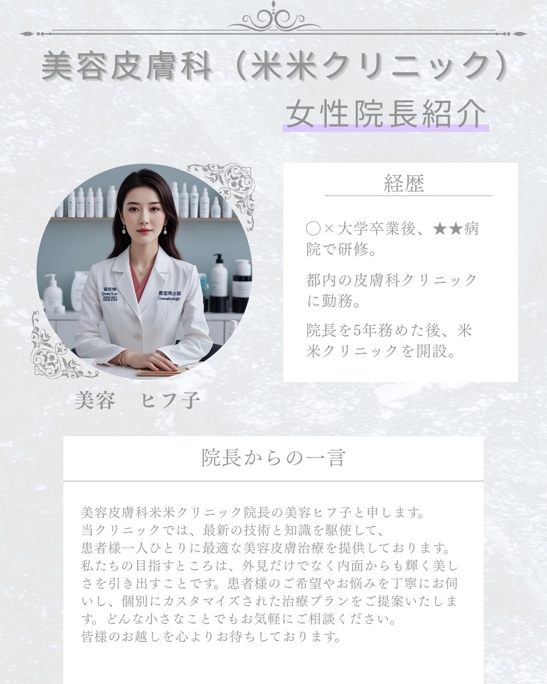 美容皮膚科の女性院長紹介【フィード】