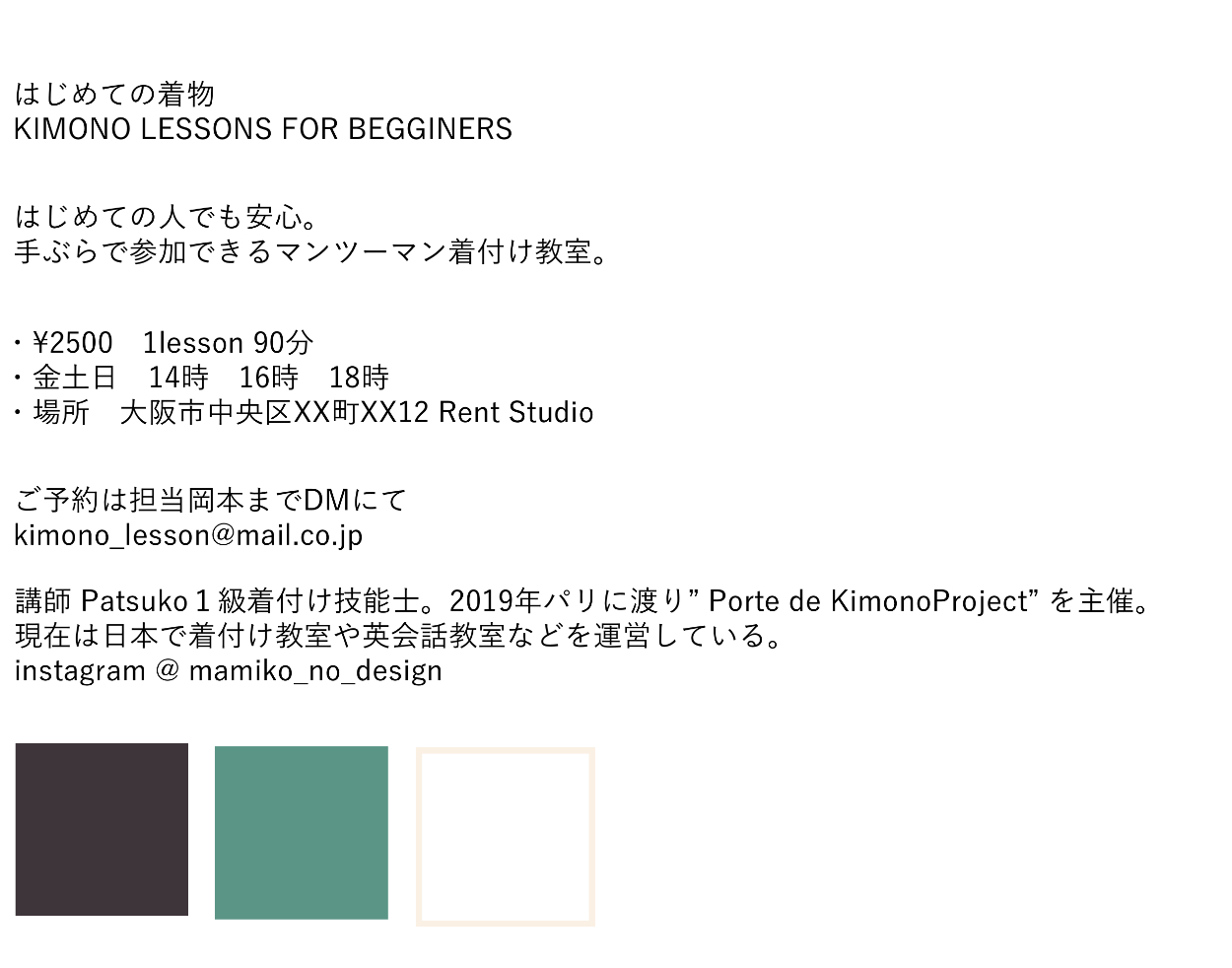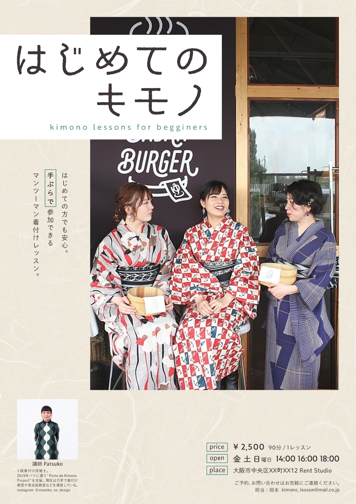 架空案件の✏️フライヤーを作成しました。 実際に実施されていた着物の着付け教室の内容を使用し、オリジナルで作成いたしました。