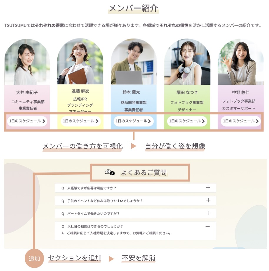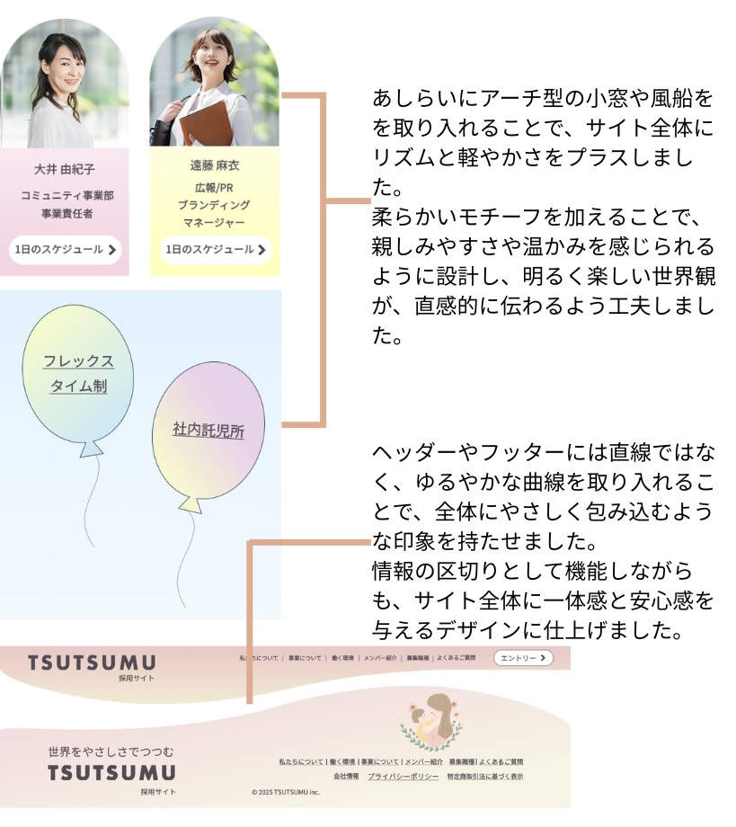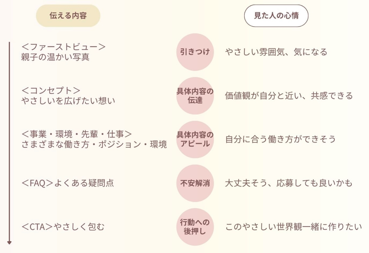 特に採用サイトでは、企業の世界観や価値観を伝え、ユーザーに“働くイメージ”を持たせることが重要であると感じ、「1日のスケジュール」CTAを設けることで、実際の働き方を具体的に想像できる導線を設計しました。