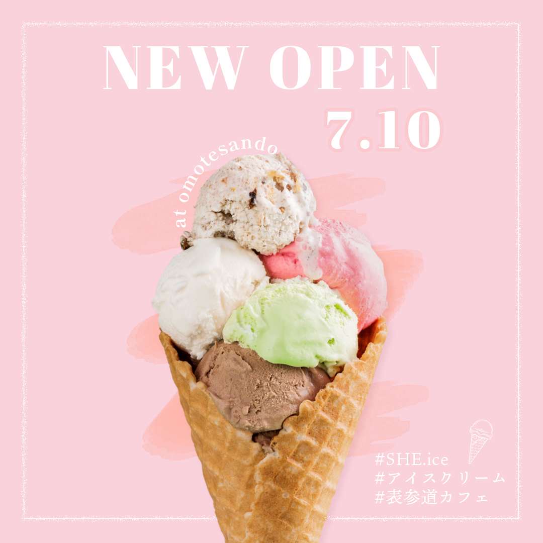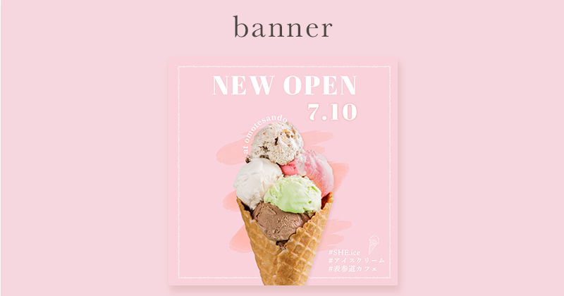 SHElikes 自主制作課題で、架空のアイスクリーム屋さんオープンバナーを制作しました。
