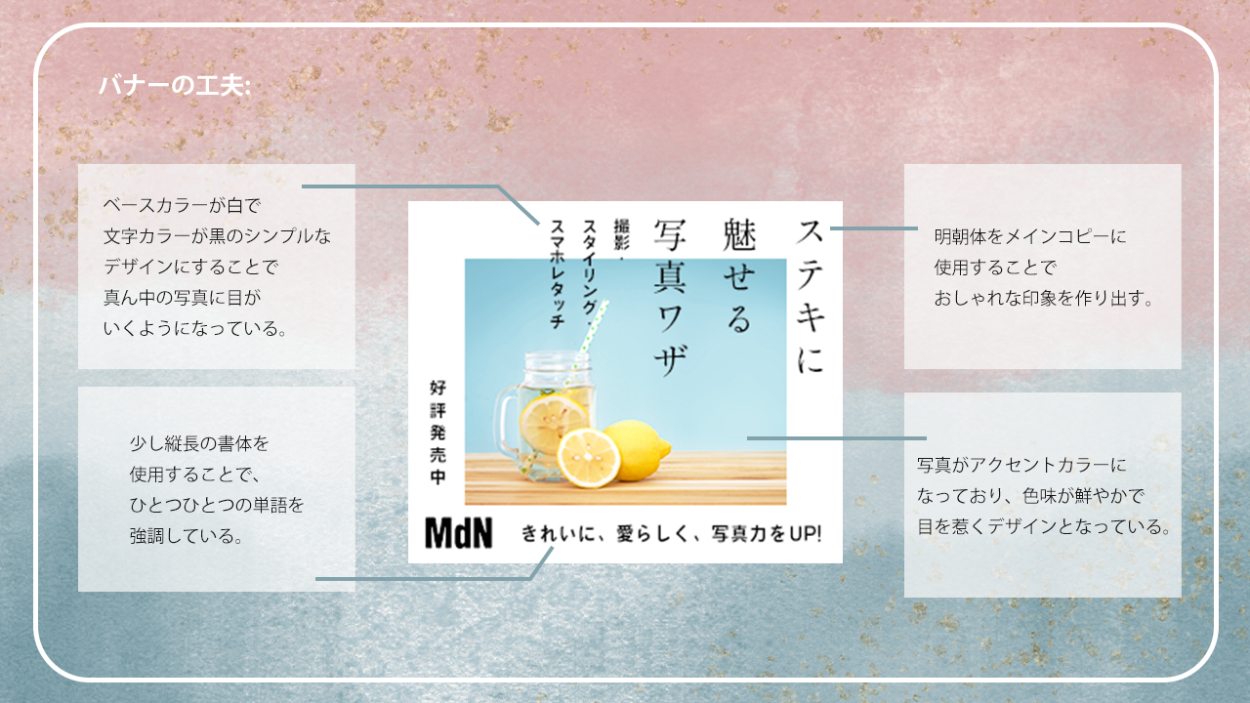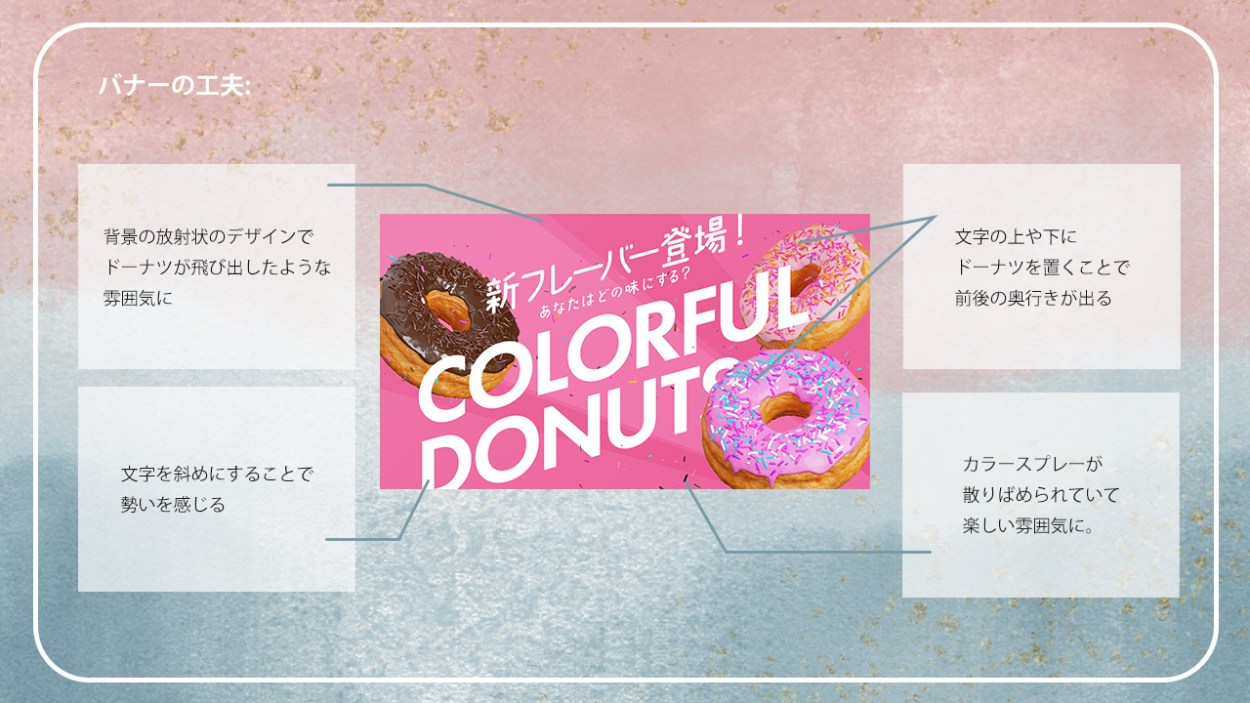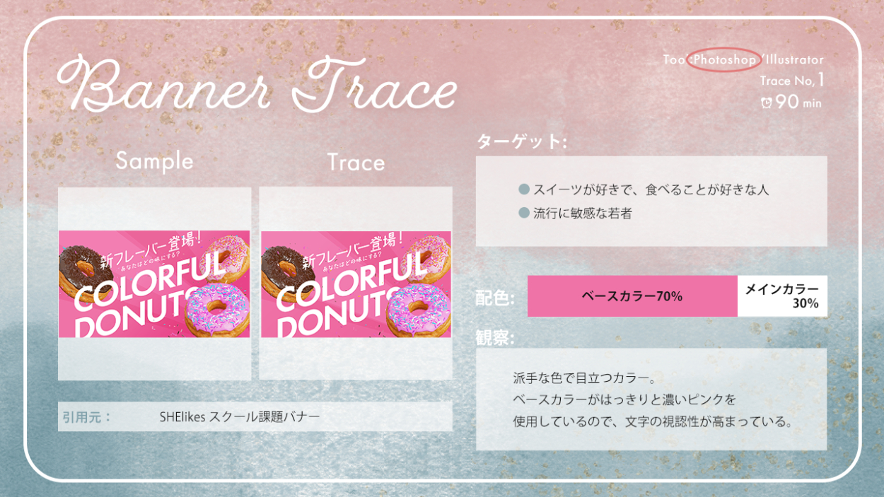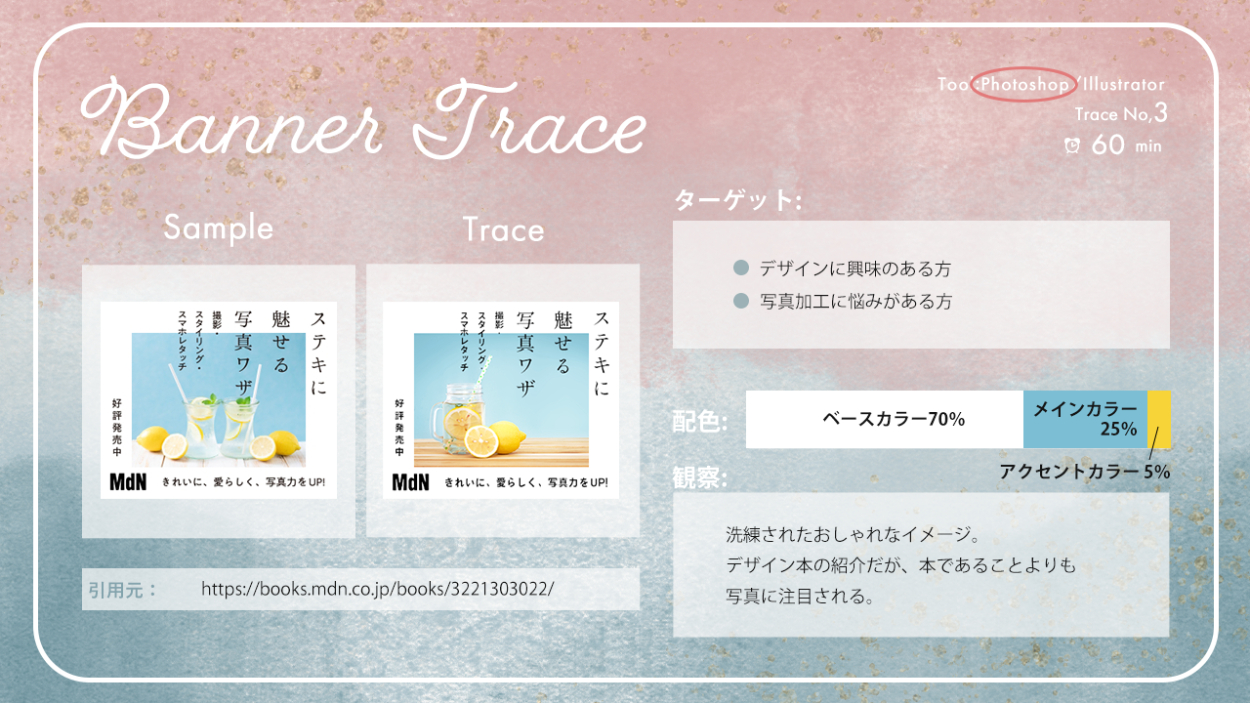 バナートレースまとめ あさのみほ 駆け出しのフリーランスWebデザイナー OVERVIEW これまで行ってきたバナートレースをまとめました。 YEAR 2023 【バナートレースの目的】既存のバナーを真似ることで、効率よくデザインツールの使い方を習得する既存のバナーを観察・分析することで、デザインを見る目を養う
