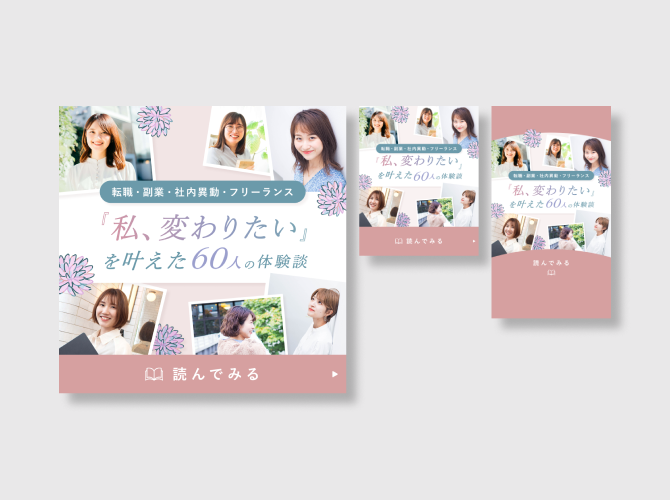 要件とワイヤーフレームに沿って広告バナーのデザインを制作いたしました/使用ツール:Figma
