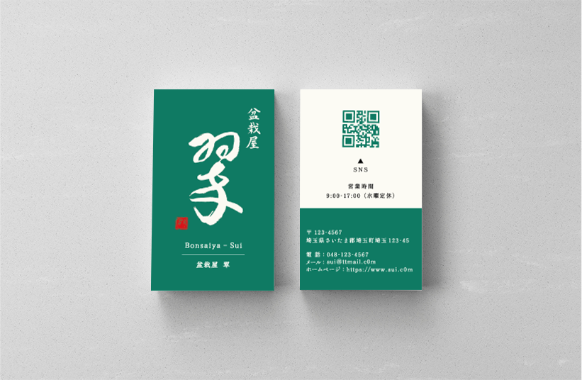 ロゴを手書きの筆文字で作成することで、繊細で流動的な盆栽のイメージをアピール。