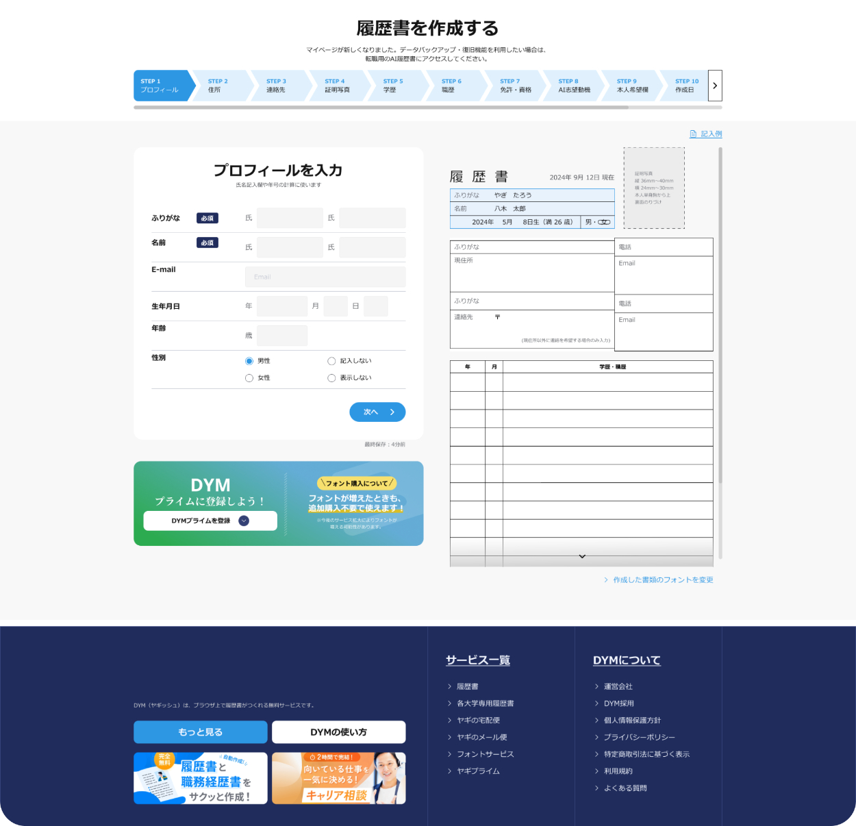 プロジェクトの簡単な説明:WEBブラウザから履歴書・職務経歴書を作成するシステムのUI/UXのデザイン依頼